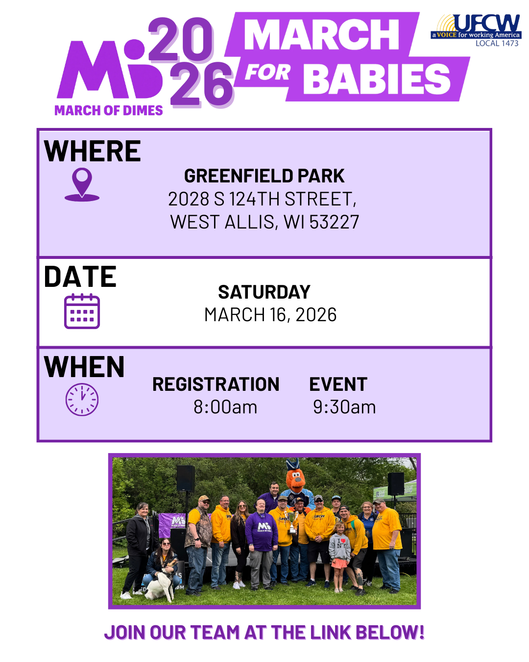 Link to join our team: https://www.marchforbabies.org/team/UFCW1473